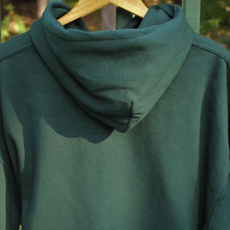 Loch Moose Monstah Sweatshirt hand printed in Maine. Color is forest green 50/50 blend cotton/poly.